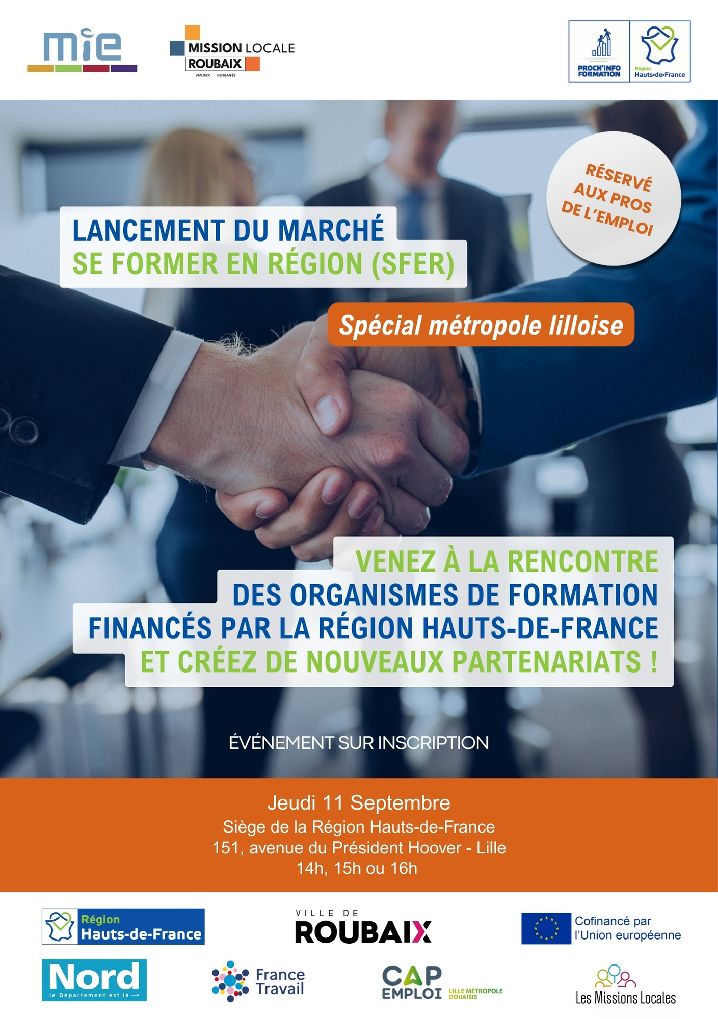 Dans le cadre du lancement du nouveau marché régional Se Former en Région (SFER), le PRoch’Info Formation Lille métropole et ses partenaires organisent une rencontre exceptionnelle entre :