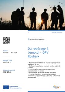 La Mission Locale de Roubaix est soutenue par l’Union européenne dans le cadre de l’opération « Du repérage à l’emploi – QPV Roubaix » – Mission Locale Roubaix